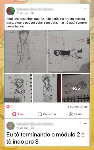 Tire dúvidas, compartilhe sua evolução e faça parte de um grupo de alunos apaixonados por desenho.